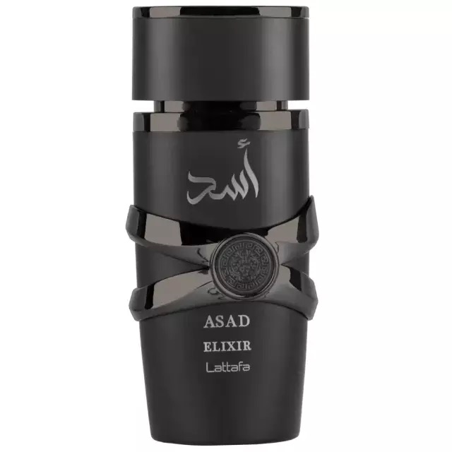 Asad Elixir de Lattafa Perfumes é um perfume Oriental Masculino. Esta é uma nova fragrância. Asad Elixir foi lançada em 2025. As notas de topo são: Toranja, Pimenta Rosa e Açafrão. As notas de coração são: Tab., Cedro e Baunilha. As notas de fundo são: Âmbar Claro, Patchouli, Olíbano e Cashmeran.